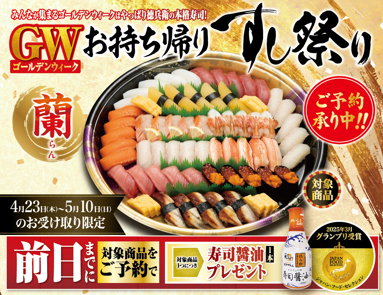 2026.04.01更新 GW(ゴールデンウィーク)お持ち帰りすし祭り2026年4月23日(木)~5月10日(日) 2026.03.30更新 9のつく日は「徳兵衛の日」毎月9日・19日・29日に実施中 2026.03.10更新 予告【高山店】リニューアル1周年祭!!2026年4月4日・11日・18日・25日(毎週土曜日) 2026.03.03更新 高知海鮮祭り2026年3月3日(火)~5月6日(水・振休) 2026.03.03更新 【平日限定】春ランチメニュー2026年3月3日(火)~4月末ごろまで 2026.03.03更新 春のスイーツ2026年3月3日(火)~5月6日(水・振休) 2026.03.02更新 春のお祝いに!徳兵衛のお持ち帰り寿司随時ご予約承り中です! 2026.02.27更新 【3/25~4/6】毎朝10時00分オープン!2026年3月25日(水)~4月6日(月) 2026/03/19 【お詫びとお知らせ】海援鯛欠品について 2026/03/18 【徳兵衛の日】内容変更のお知らせ 2025/07/18 アサヒスーパードライを【キンキンタンブラー】にて 販売中! 一覧を見る 現在ニュースは登録がございません。