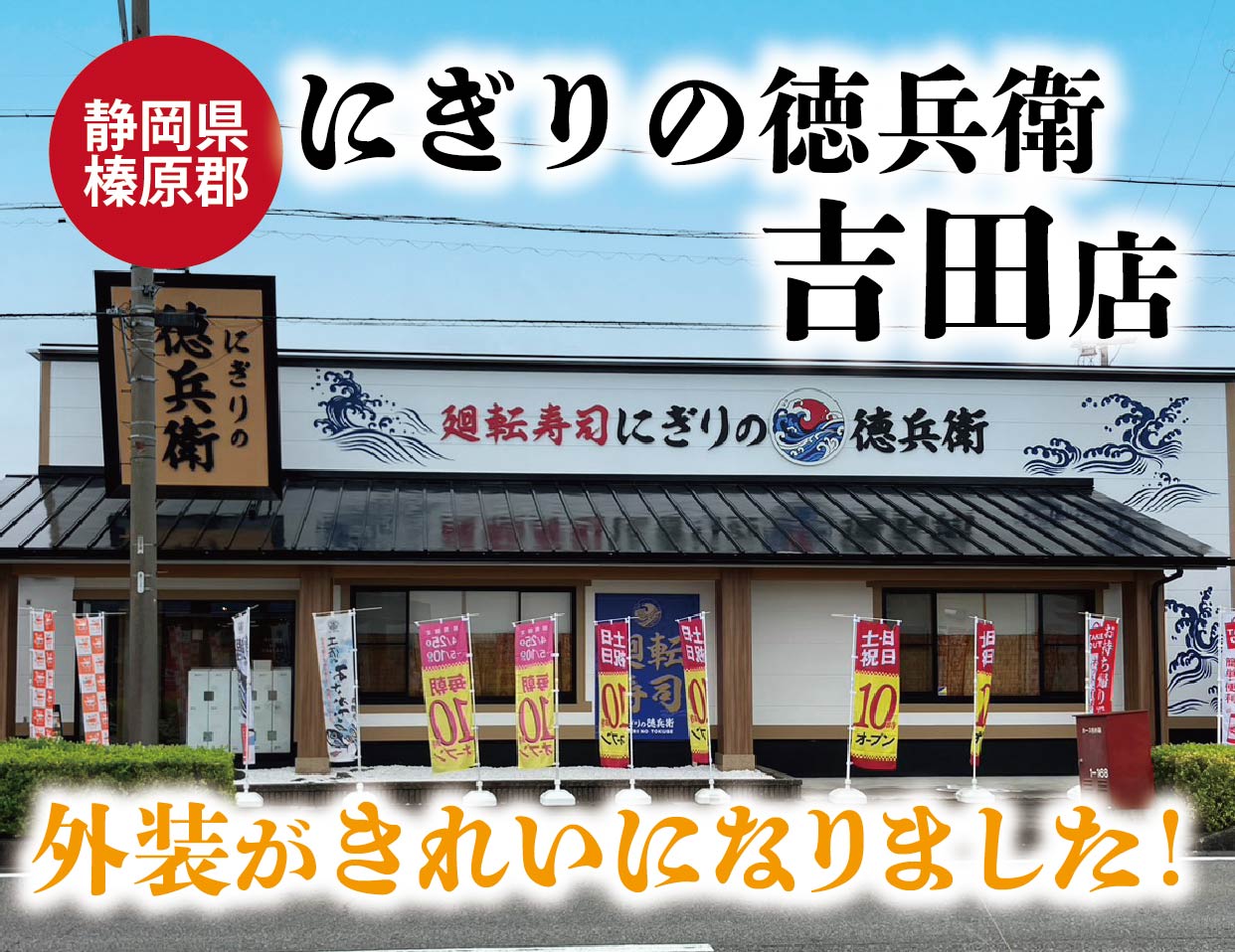 2026.04.22更新 【4/25~5/10】毎朝10時00分オープン!2026年4月25日(土)~5月10日(日) 2026.04.22更新 GW(ゴールデンウィーク)お持ち帰りすし祭り2026年4月23日(木)~5月10日(日) 2026.04.21更新 【土・日・祝日】は10時00分オープン土日祝日は10時00分オープン 2026.04.19更新 【一部店舗限定】必見!職人による華麗なパフォーマンス【解体ショー】毎週土曜日 2026.04.16更新 【オープン情報】にぎりの徳兵衛 鵜沼店 4.25リニューアルオープン!2026年4月25日(土)リニューアルオープン 2026.04.15更新 【オープン情報】にぎりの徳兵衛 羽島店 4.18リニューアルオープン!2026年4月18日(土)リニューアルオープン 2026.04.07更新 【オープン情報】にぎりの徳兵衛 中村豊国店 4.12リニューアルオープン!2026年4月12日(日)リニューアルオープン 2026.04.07更新 【オープン情報】にぎりの徳兵衛 桑名五反田店 4.11リニューアルオープン!2026年4月11日(土)リニューアルオープン 2026/04/01 【お詫びとお知らせ】赤かます塩〆炙り・チャンバラ貝の 欠品について 2026/03/19 【お詫びとお知らせ】海援鯛欠品について 2026/03/18 【徳兵衛の日】内容変更のお知らせ 一覧を見る 現在ニュースは登録がございません。
