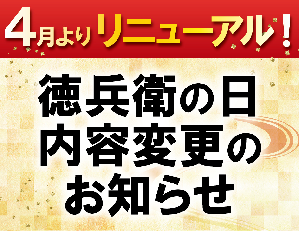お知らせ お知らせにぎりの徳兵衛TOP 1 / 3123 2026.04.01更新 GW(ゴールデンウィーク)お持ち帰りすし祭り2026年4月23日(木)~5月10日(日) 2026.03.30更新 9のつく日は「徳兵衛の日」毎月9日・19日・29日に実施中 2026.03.19更新 【お詫びとお知らせ】海援鯛欠品について*** 2026.03.18更新 【徳兵衛の日】内容変更のお知らせ2026年4月~ 2026.03.10更新 予告【高山店】リニューアル1周年祭!!2026年4月4日・11日・18日・25日(毎週土曜日) 2026.03.03更新 高知海鮮祭り2026年3月3日(火)~5月6日(水・振休) 2026.03.03更新 【平日限定】春ランチメニュー2026年3月3日(火)~4月末ごろまで 2026.03.03更新 春のスイーツ2026年3月3日(火)~5月6日(水・振休) 1 / 3123