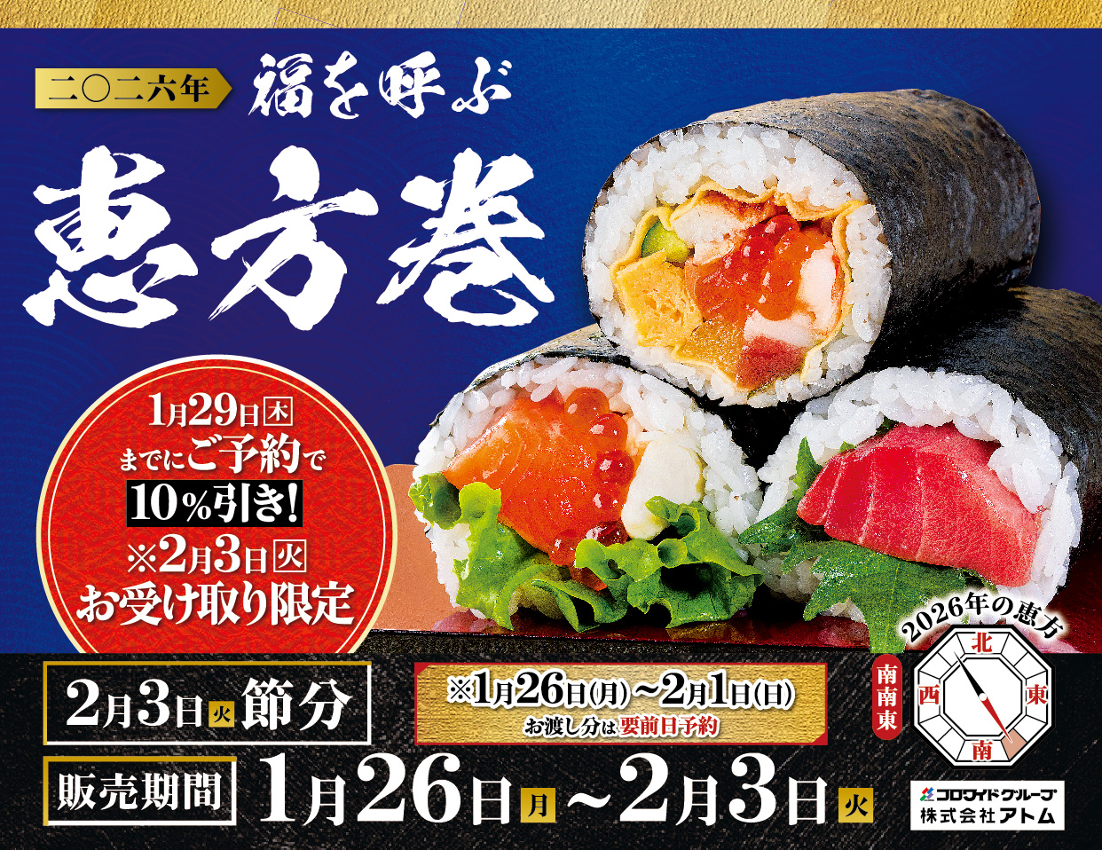 お知らせ お知らせにぎりの徳兵衛TOP 1 / 3123 2025.12.26更新 【年末年始】営業内容、営業時間のお知らせ(pdf)年末年始は営業時間等を変更させて頂きます 2025.12.26更新 【12/20~1/6】毎朝10時00分オープン!2025年12月20日(土)~2026年1月6日(火) 2025.12.26更新 2026年 福を呼ぶ恵方巻2026年1月26日(月)~2月3日(火) 2025.12.02更新 2026新春福袋《ミツカン鍋セット+総額5,800円分のクーポン入り!》2026年1月3日(土)より販売開始(一部店舗は1月1日~) 2025.11.12更新 総額28,000円分年間クーポン進呈:年末年始お持ち帰りすし祭り【極重(きわみじゅう)&#・・・12月30日(火)締切⏰ネット決済特典付き🎁 2025.11.11更新 ぶりと冬の寒便り2025年11月11日(火)~2026年1月12日(月・祝) 2025.11.11更新 【平日限定】冬ランチメニュー2025年11月11日(火)~2026年1月9日(金) 2025.11.11更新 冬のスイーツ《りんご》2025年11月11日(火)~2026年1月12日(月・祝) 1 / 3123