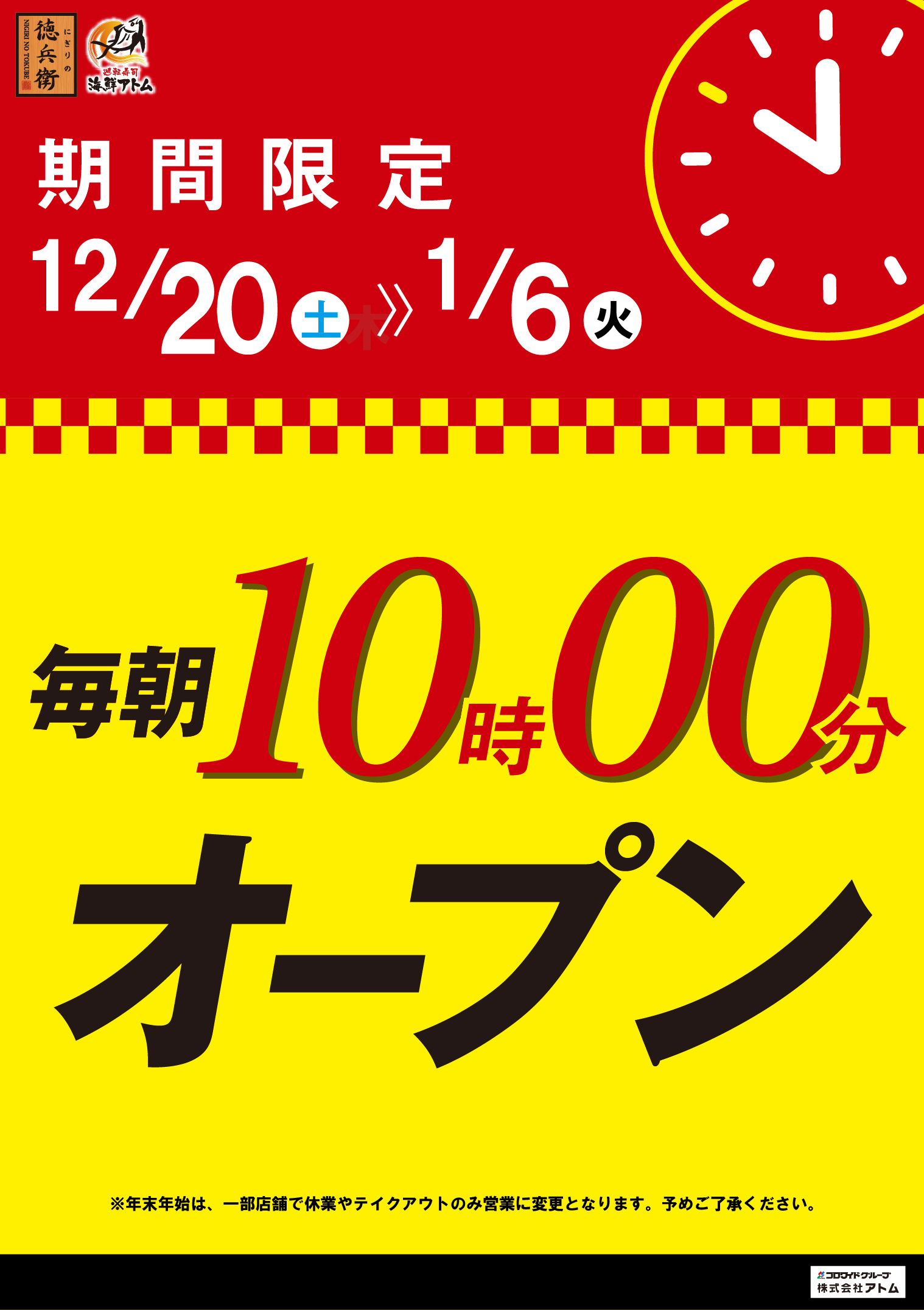 【12/20~1/6】毎朝10時00分オ・・・お知らせにぎりの徳兵衛TOP