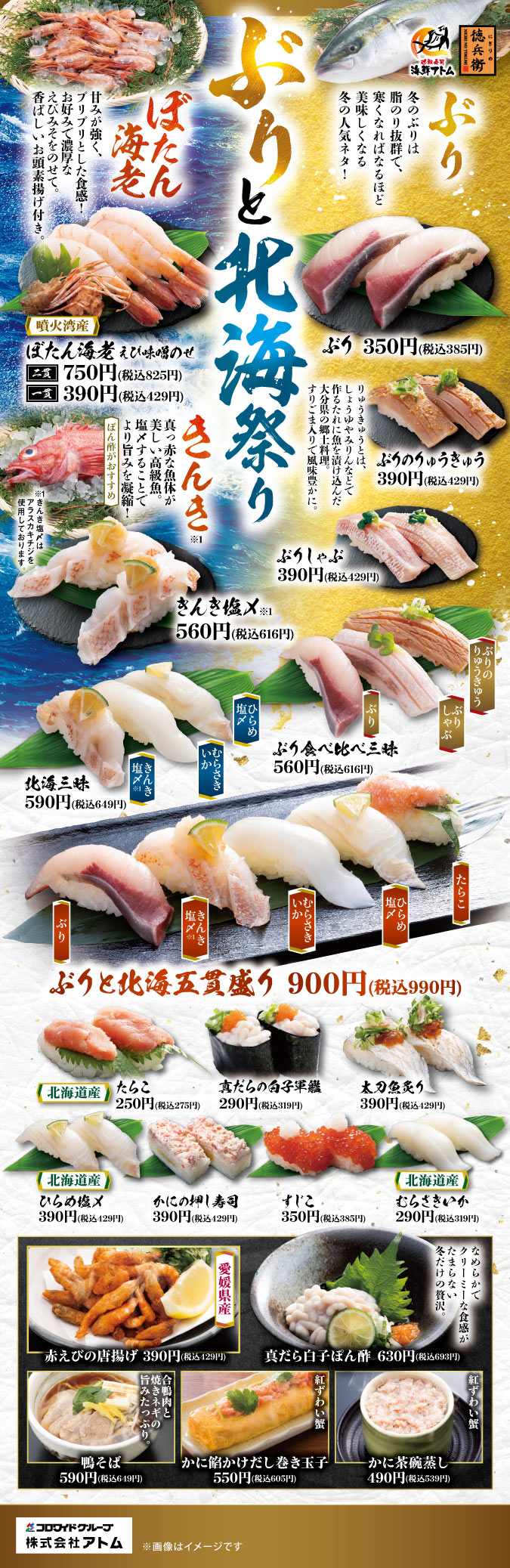 第一弾に続き、冬のダントツ人気の「ぶり」をはじめ、北海の幸が勢揃い!