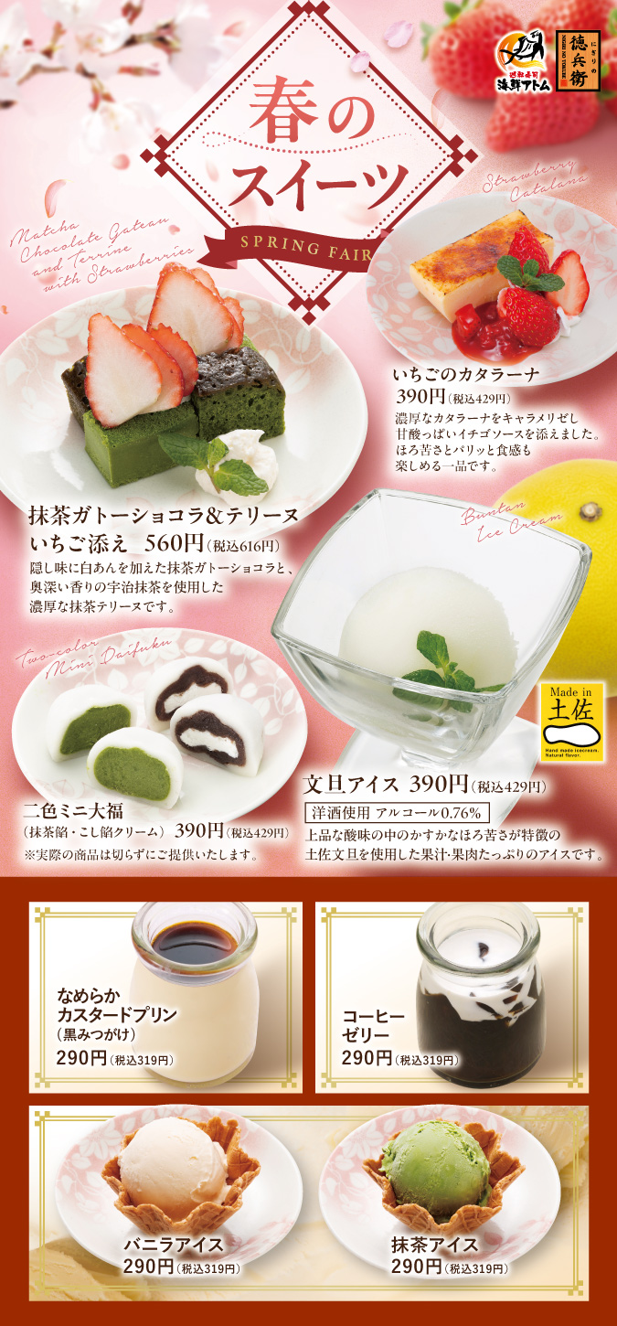 ぜひ、お近くのにぎりの徳兵衛で春の限定スイーツを心ゆくまでお楽しみください。