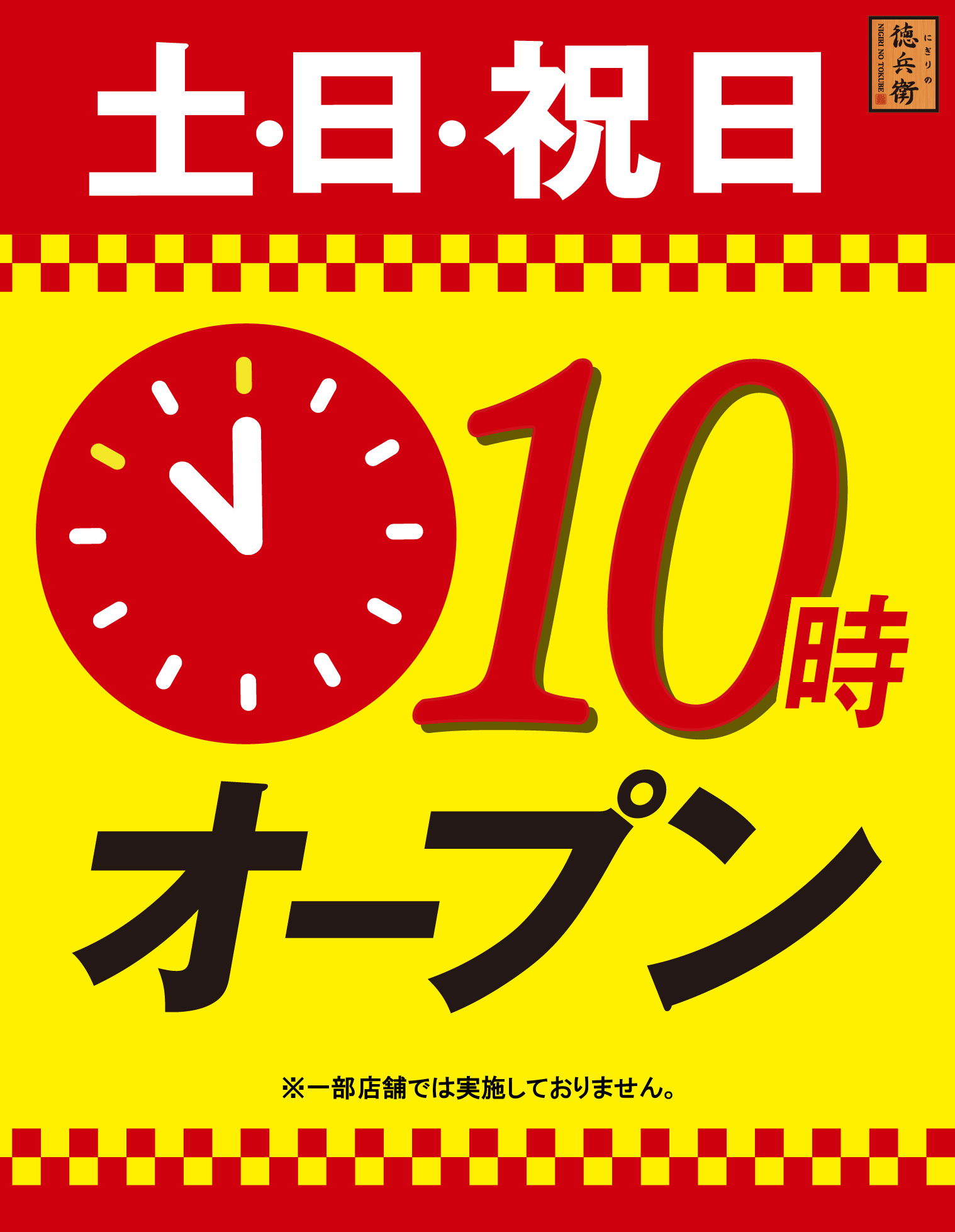 【土・日・祝日】は10時00分オープンお知らせにぎりの徳兵衛TOP