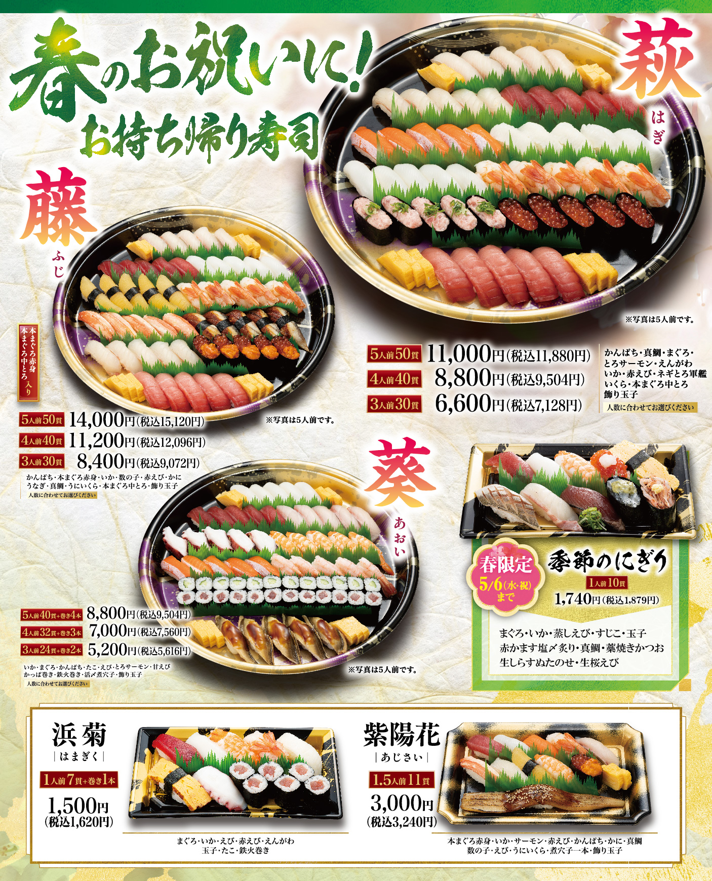 春のお祝いに!徳兵衛のお持ち帰り寿司