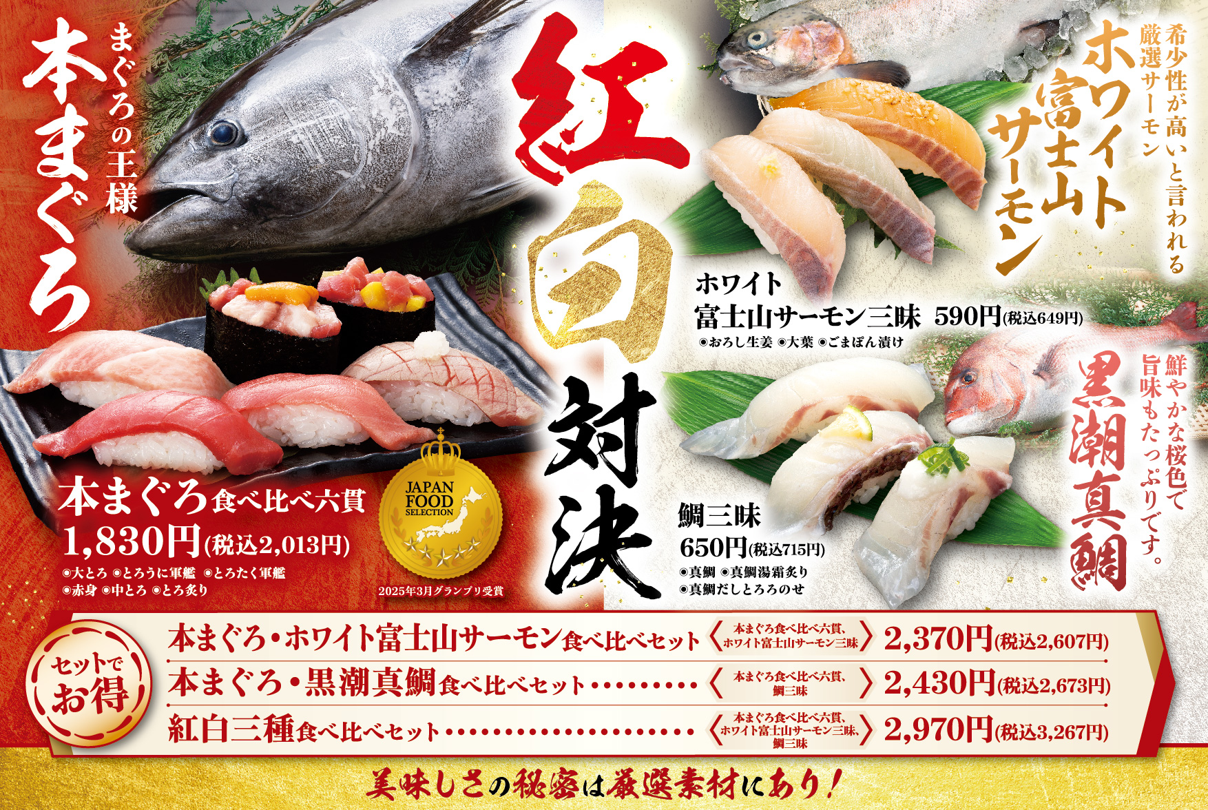 《紅白対決》本まぐろvsホワイト富士山サーモン&黒潮真鯛