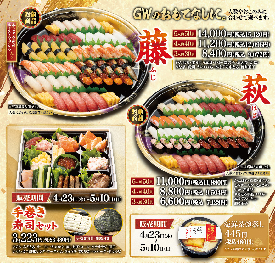 GW(ゴールデンウィーク)お持ち帰りすし祭りご予約承り中!!