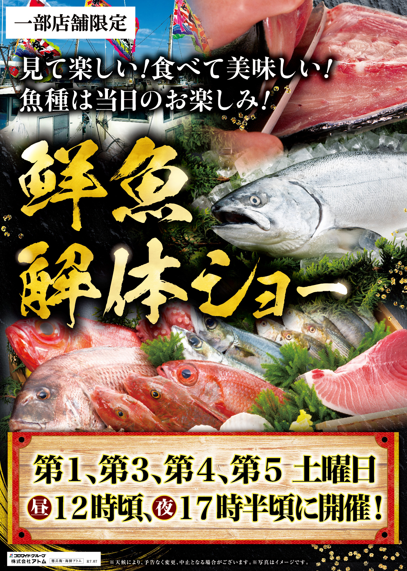 ●鮮魚解体ショー: 第1、第3、第4、第5 土曜日 昼12時頃、夜17時半頃から開催