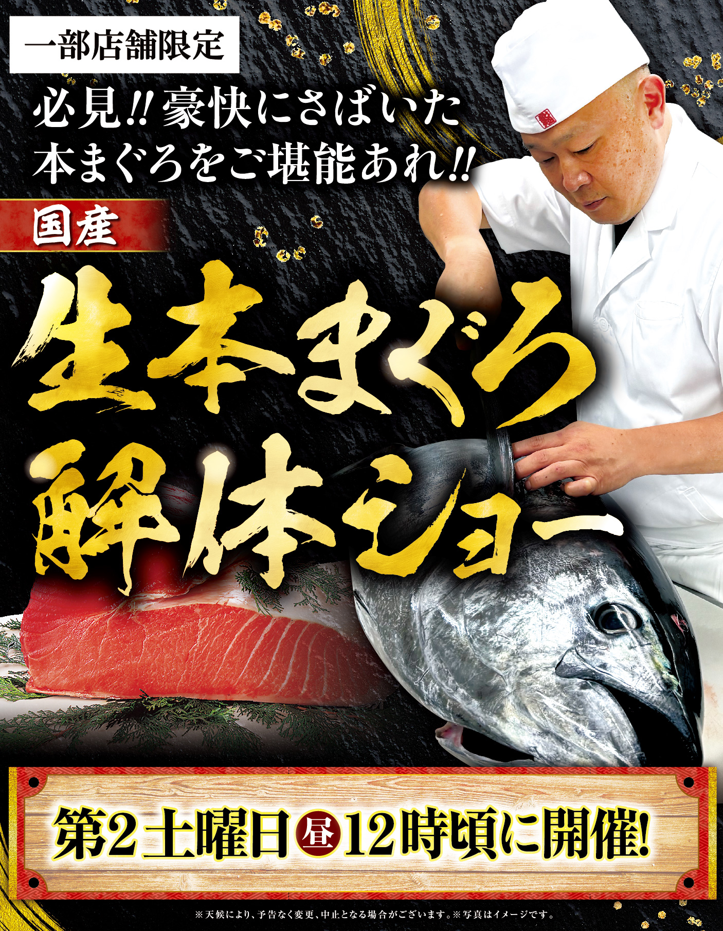 ●国産生本まぐろ解体ショー: 第2土曜日 昼12時頃から開催