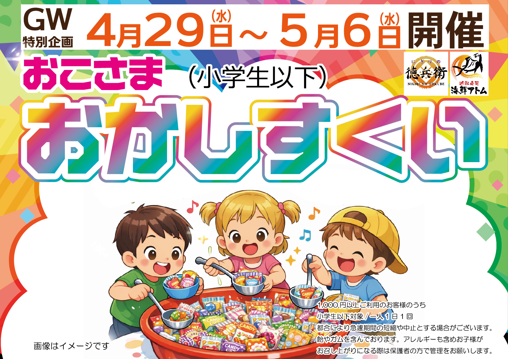 【店舗限定】GW特別企画🍬おこさまおかし・・・お知らせにぎりの徳兵衛TOP