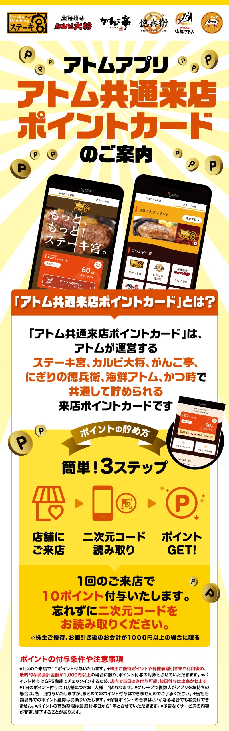 アトムアプリがパワーアップ!【アトム共通来店ポイントカード】開始!