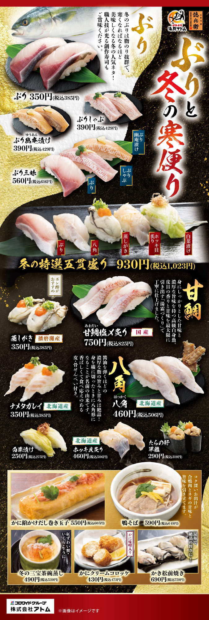 冬のおすすめメニューが寿司とサイドメニュー合わせて全17品が登場!