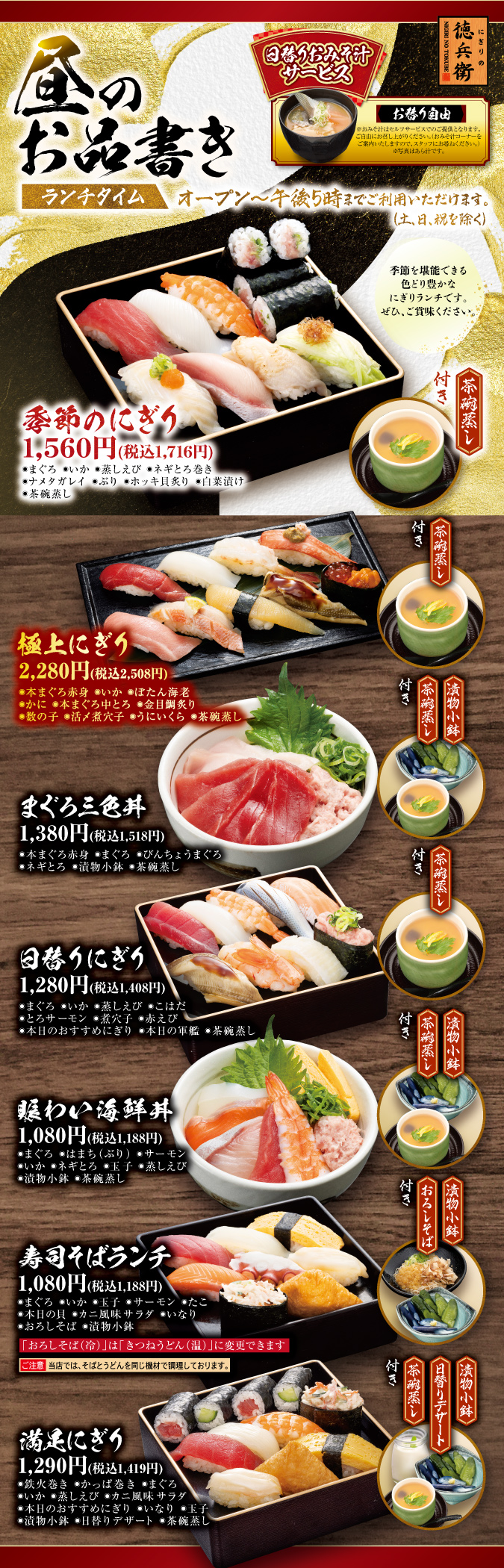 【平日限定】冬ランチメニューお知らせにぎりの徳兵衛TOP